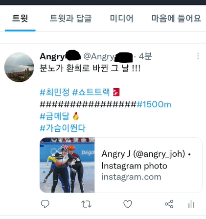 해당 인스타그램 게시물이 트위터에도 게시되었는지 확인하기 위해서 트위터로 이동하여 보았습니다. twitter 앱으로 확인한 결과 트윗(tweet) 화면 상단에서 바로 해당 글을 동시 등록된 것을 확인할 수 있었습니다.