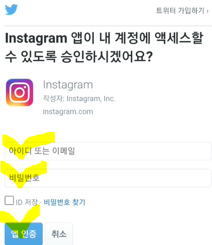 인스타그램 게시물 작성시 트위터에 동시에 게시하는 방법
