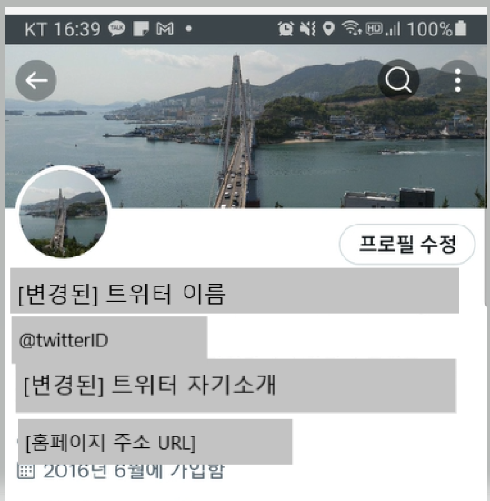트위터 변경된 프로필 내용 재확인