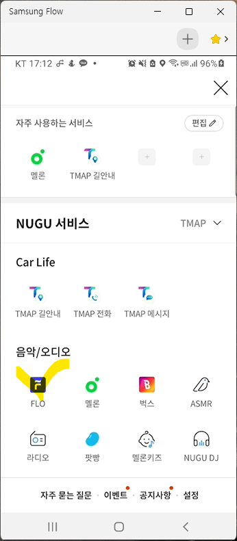 누구 모바일 앱 FLO 플로 음악 뮤직 앱과 연동하는 방법
