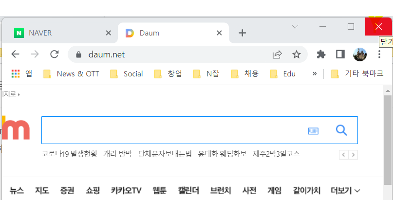 - 창 1개에 2개의 탭 사용중 예시 : 네이버, 다음 (아래 사진 참조)