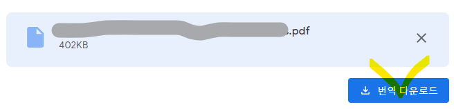 구글번역으로 문서를 업로드한 후 '번역' 버튼을 누르면 바로 번역 작업이 진행되며, 다음과 같이 버튼 이름이 번역에서 번역 다운로드로 변경됩니다.