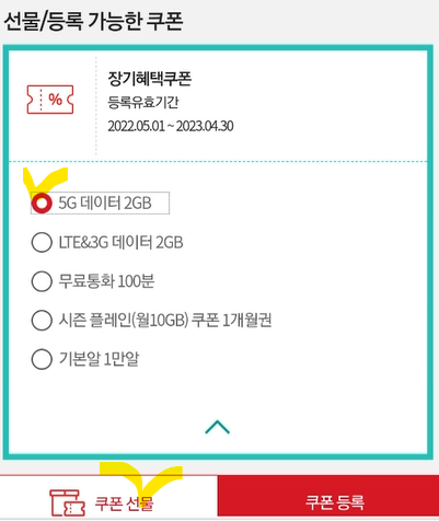 kt 장기혜택 데이터 쿠폰 선물하는 방법 (5G 및 LTE & 3G 데이터)