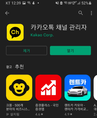 - 카카오톡 채널 관리자 앱 설치 및 권한 허용