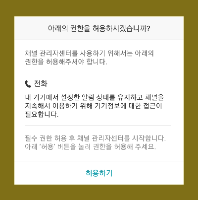 카카오톡 채널 관리자 앱 설치 및 권한 허용