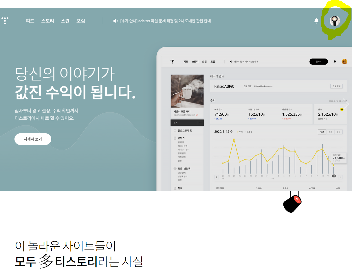 티스토리 블로그 홈페이지 접속