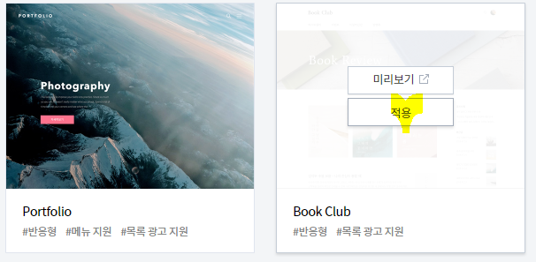 새로 변경할 스킨에 마우스를 가져간다음 "적용" 버튼을 클릭하면 됩니다.