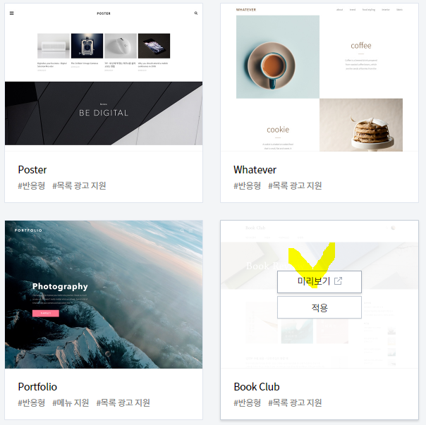스킨 미리보기로 확인한 Book Club의 미리보기 입니다.