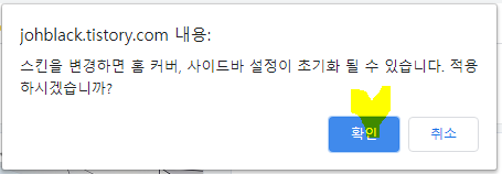 새로운 스킨을 적용하려고 하니 변경시 홈 커버, 사이드바 설정이 초기화될 수 있습니다 라고 나오네요. 그런데 초기화되면 되는 것이지 될 수 있다는 건? 무슨 의미인가요? 티스토리도 잘 모르겠다는 것인지 표현이 애매하네요.