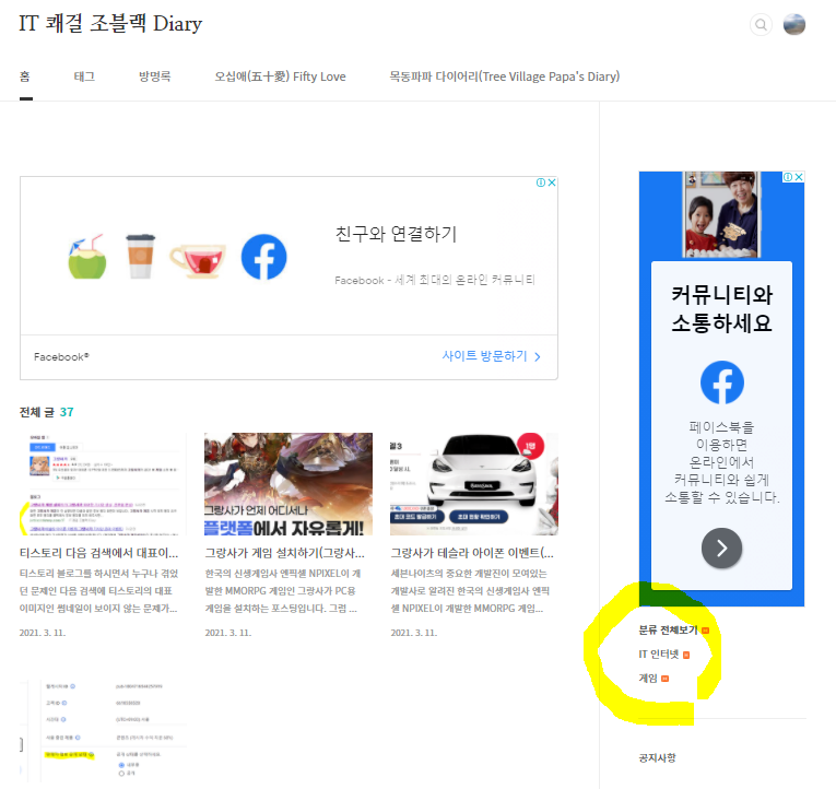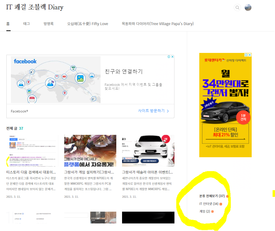 우선 중요한 카테고리 구성을 확인하니 상단에서는 분류 전체보기로 잘 표현이 되어있습니다.
