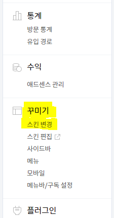 1. 티스토리 블로그 꾸미기 스킨변경 메뉴