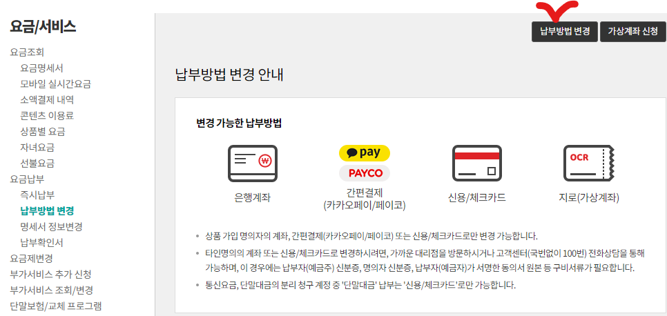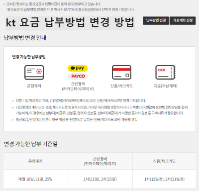 - kt 마이 요금납부 납부방법 변경 메뉴