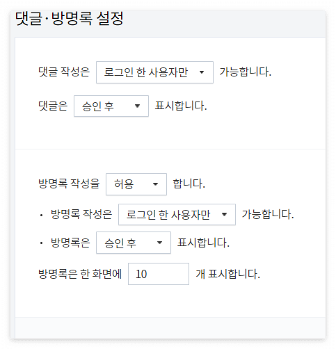 티스토리 블로그 댓글 방명록 설정 방법 요약
