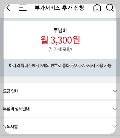 kt 핸드폰 두 번째 전화번호 하나 더 투넘버 서비스 신청 방법 요약