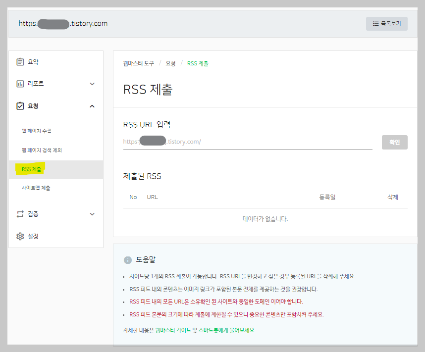 네이버 서치 어드바이저 웹마스터 도구 티스토리 RSS 제출 관련 도움말