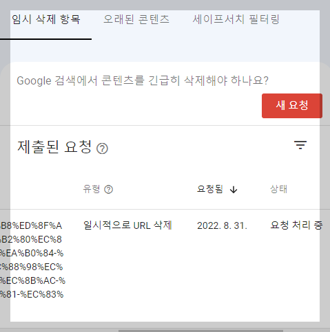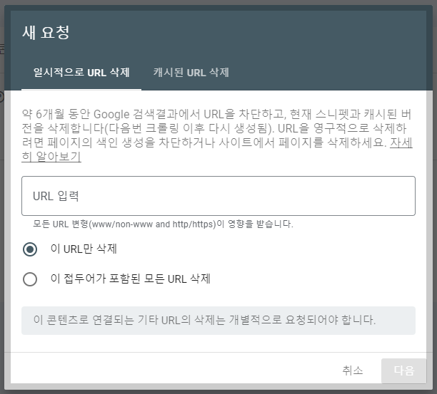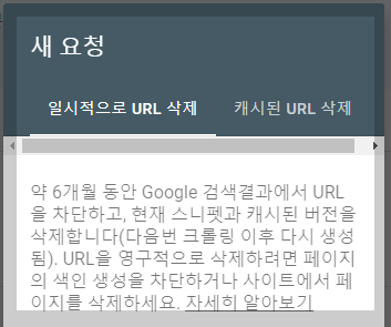 구글 서치 엔진 삭제 메뉴에서 일시적으로 URL 삭제의 의미