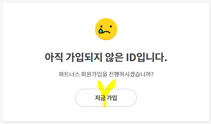 로그인을 누르면 다음과 같이 아직 가입되지 않았다고 알려주는 화면이 보입니다.