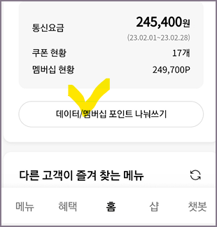 KT 데이터 및 멤버십 포인트 나눠 쓰는 방법 요약