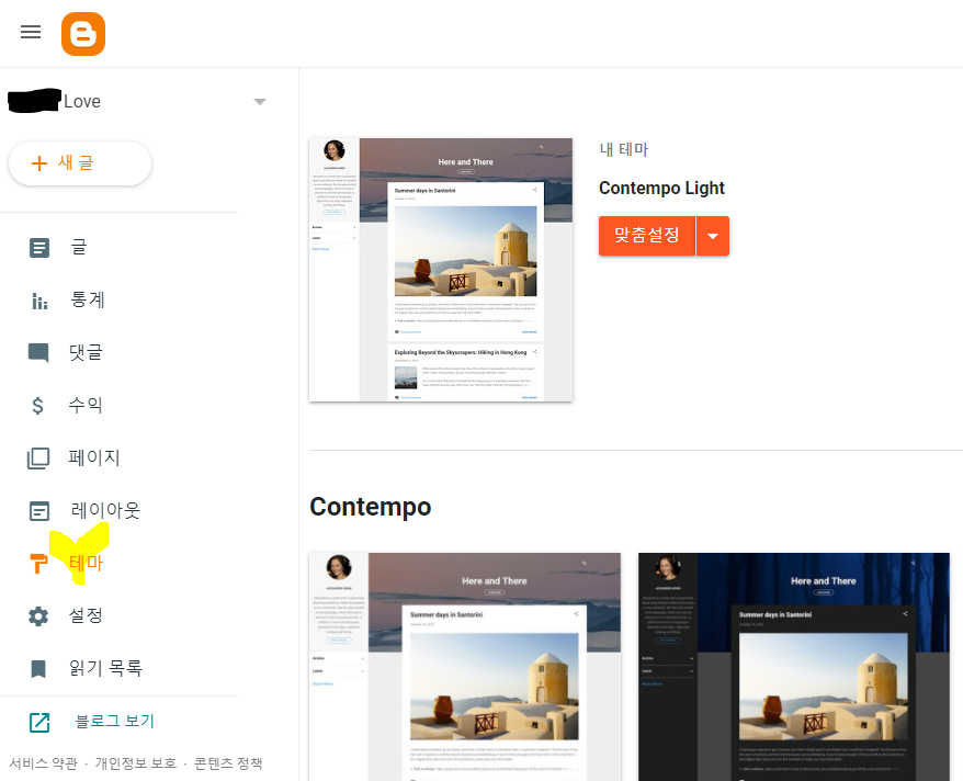 디폴트로 Contempo Light 테마로 지정되어 있으나, 여러가지 테마가 만들어져 제공되고 있으니 여기서 마음에 드는 테마를 골라 본인의 구글 블로그 블로거에 적용하시면 되겠습니다.