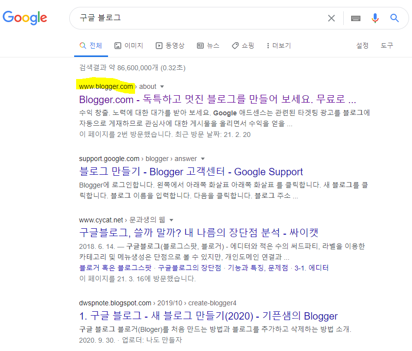 구글 블로그의 공식명칭은 Blogger 블로거 입니다. 검색엔진에서 구글 블로거를 찾아볼까요.