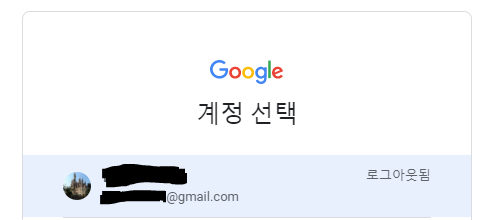 로그인을 클릭하면 다음과 같이 구글 계정 선택 화면이 보입니다.