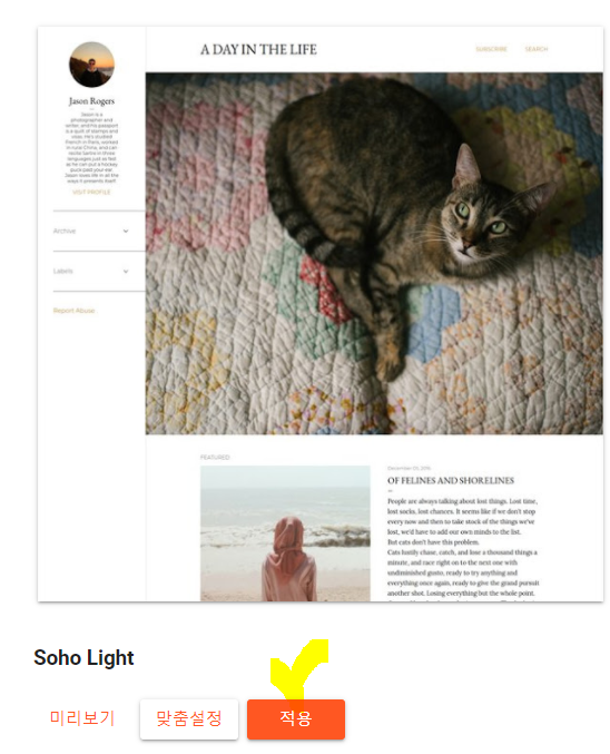 아래 화면은 Soho Light라는 테마를 선택해서 적용하는 화면입니다.