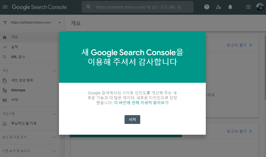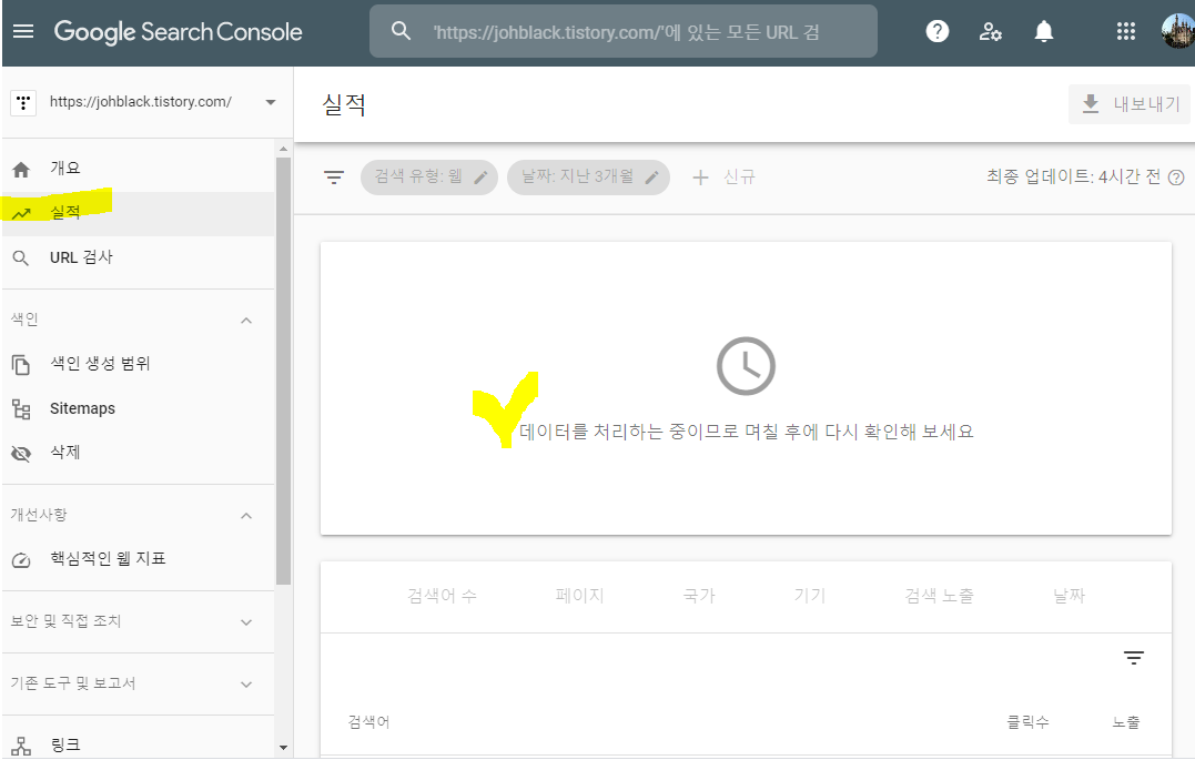 이제까지의 작업을 통해 구글 서치 콘솔의 사용도 정상적으로 시작할 수 있게 되었습니다.