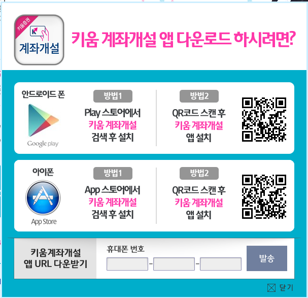 - 핸드폰으로 키움증권 계좌개설 앱설치를 원하시는 분들은