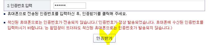 본인의 핸드폰으로 수신된 인증번호 6자리 숫자를 입력하고 "인증받기" 버튼을 클릭하시면 됩니다.