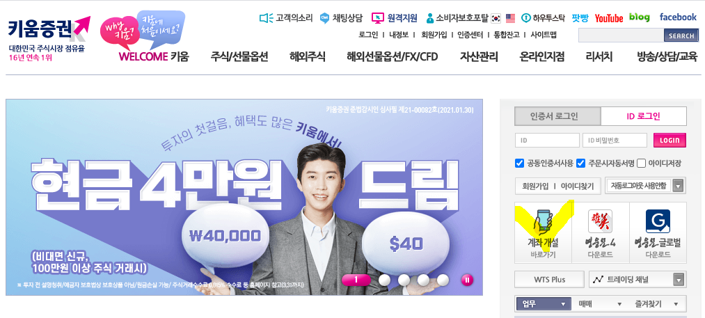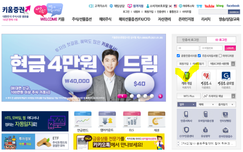 키움증권 이벤트를 상관없이 그냥 계좌 개설하시는 분들은 키움증권 홈페이지에 접속하시면 보이는 계좌개설 기능을 이용해서 진행하시면 됩니다.