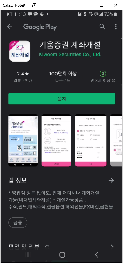 1) 핸드폰에서 직접 키움 계좌 개설을 찾아 설치하기