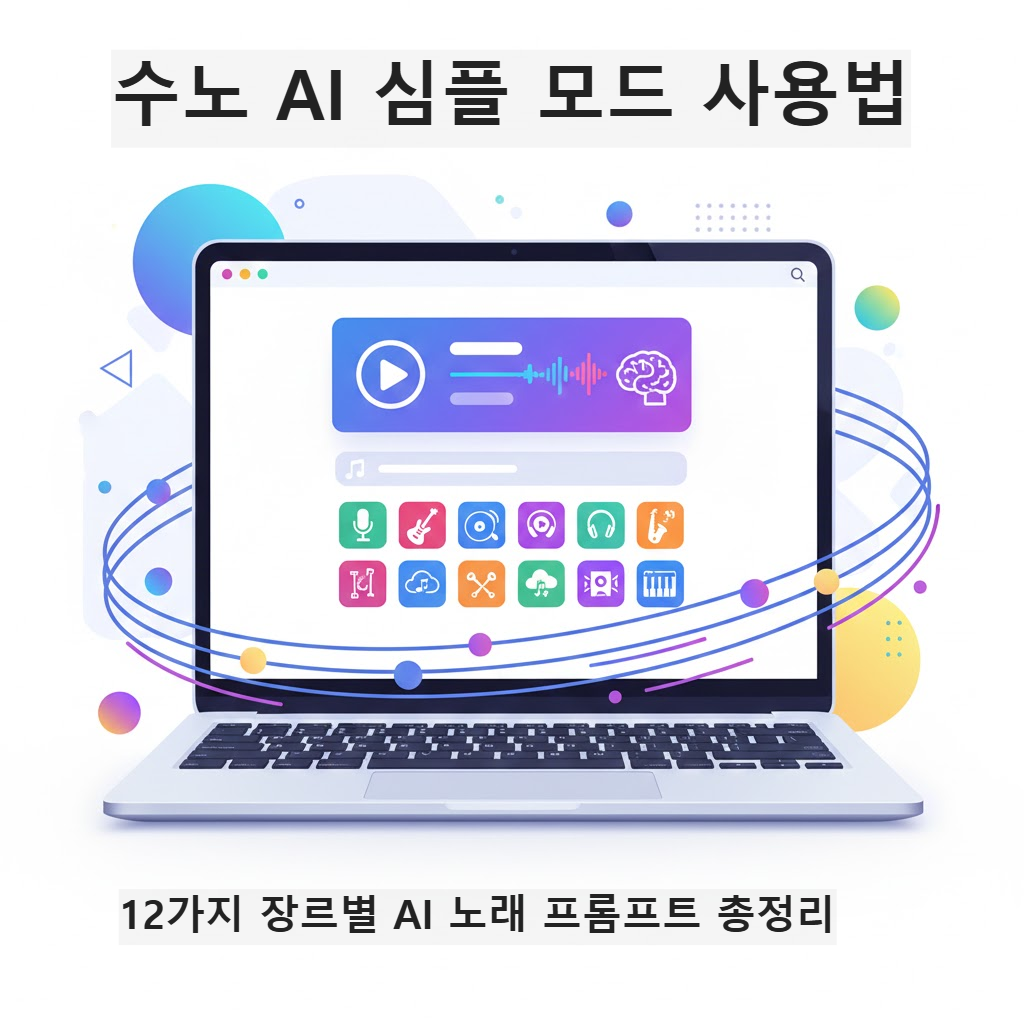 수노 AI 심플 모드(Simple Mode)로 팝, 힙합, 재즈 등 12가지 장르의 고퀄리티 AI 노래를 1분 만에 만들 수 있는 초간단 가이드입니다. 수노 이용에 초보자도 바로 쓸 수 있는 장르별 한글/영어 프롬프트(노래 설명)를 모두 공유드리니 작사가, 작곡가, 가수, 뮤지션 없이 나만의 음악을 만들고자 하시는 분들께 추천합니다.