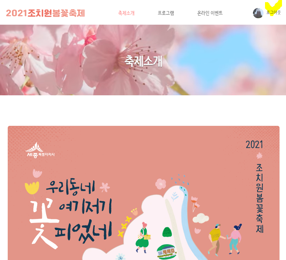 2021 조치원 벚꽃 봄꽃 축제 홈페이지 (로그인 후)