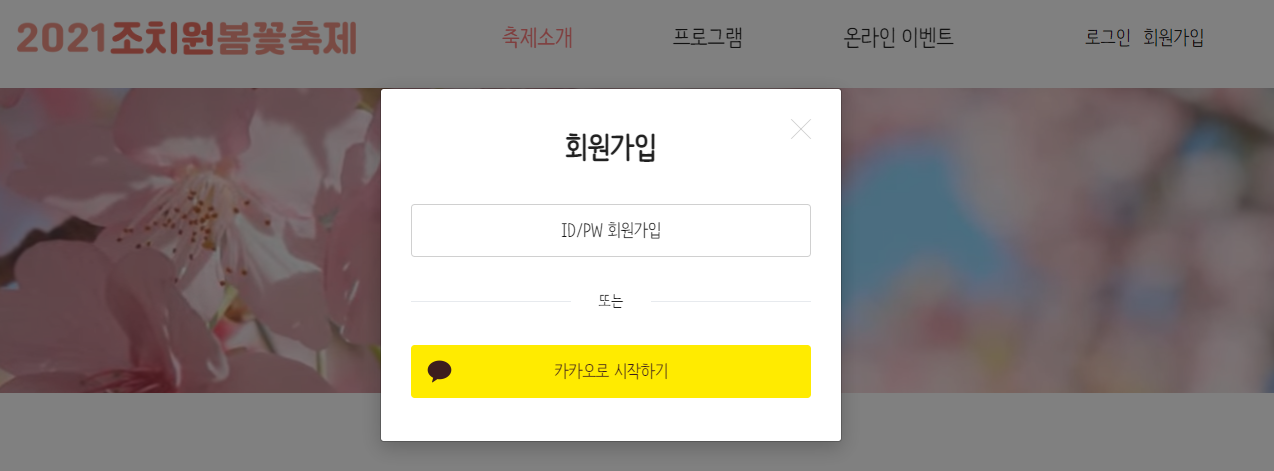 조치원 벚꽃 봄꽃축제 홈페이지 카카오로 회원가입