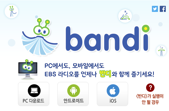 PC에서도 모바일에서도 EBS라디오를 언제나 반디와 함께 즐기세요!