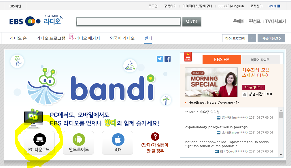저의 경우는 이제 10년 정도 출퇴근하는 차 안에서 또는 집에서 EBS 반디 외국어 채널을 들어오고 있는데요, EBS 반디 프로그램은 PC 뿐만 아니라 모바일 핸드폰으로도 EBS 라디오를 들을 수 있어서 출퇴근족에게 많은 사랑을 받고있습니다.
