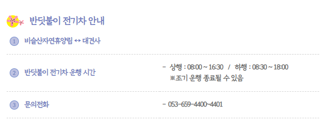 . 전기차 및 셔틀버스 문의 : 053-659-4400~4401