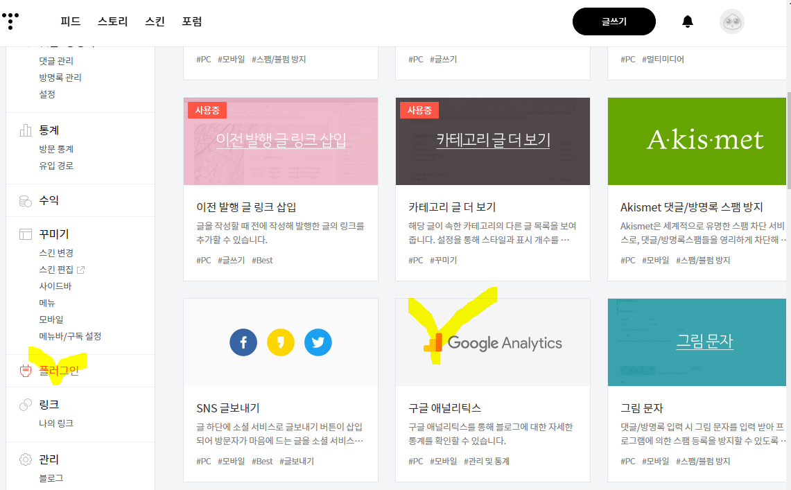 1. 티스토리 플러그인 메뉴