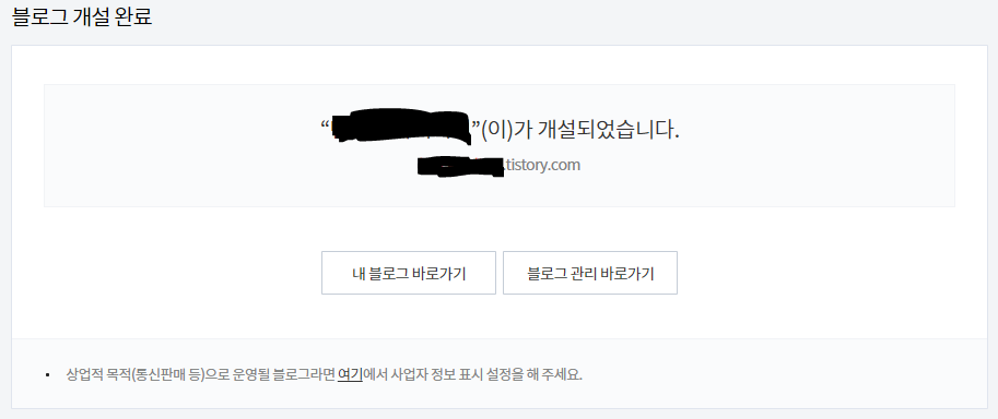 블로그 개설이 완료되면 다음과 같은 "블로그 개설 완료" 화면이 보입니다.