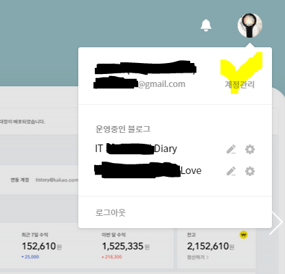 먼저 본인의 티스토리에 로그인한 상태에서 관리자 계정관리를 클릭합니다.
