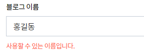 블로그 이름을 입력하고 커서를 이동하면 블로그 이름에 대해 자동으로 체크해줍니다.