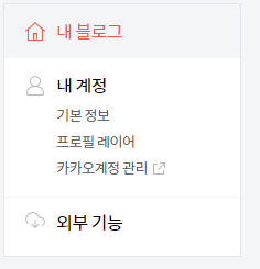 티스토리 계정관리의 좌측 메뉴 구성은 다음과 같습니다.